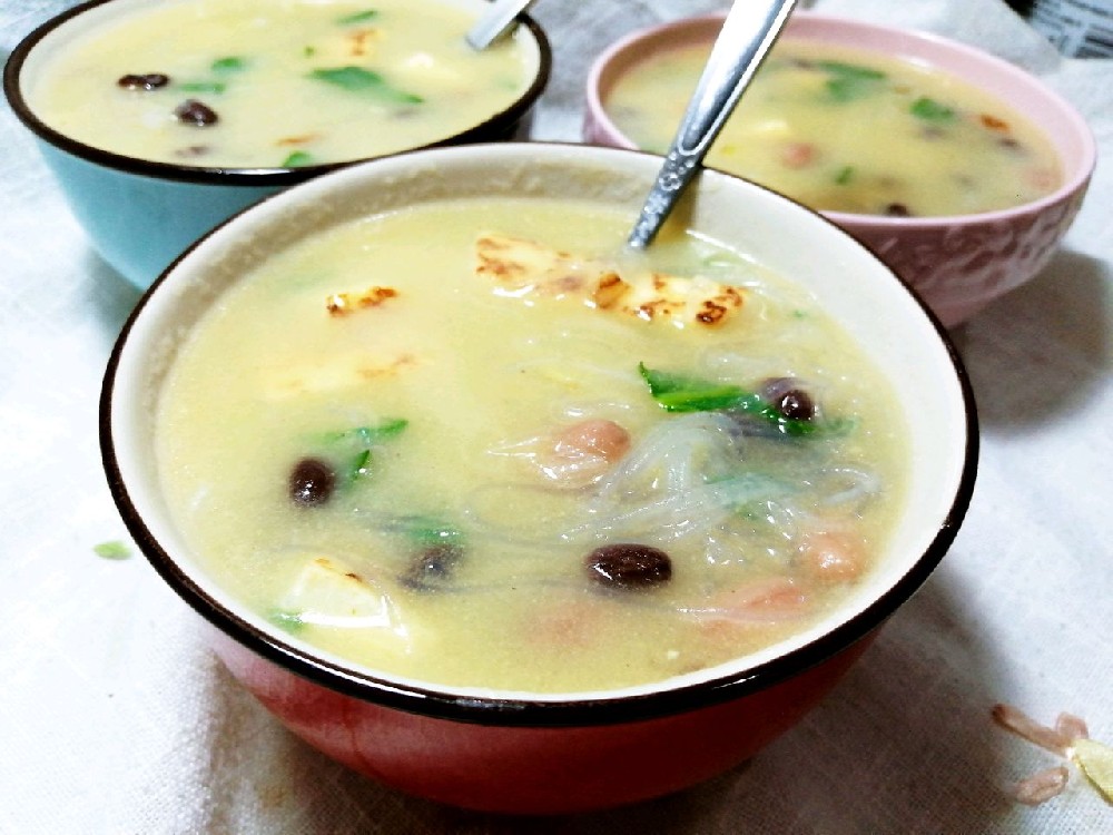 花生要提前炸香或炒香,粉條要軟而不斷,和小米漿融合后,才能形成那種濃稠又順口的口感。調味——咸鮮適中,香氣撲鼻