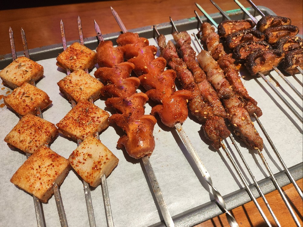 剛開始不需要備太多種類,但基礎的肉串、蔬菜、海鮮、面筋、豆制品這些是少不了的。調料部分包括孜然、辣椒面、燒烤醬、花生碎、芝麻油等。